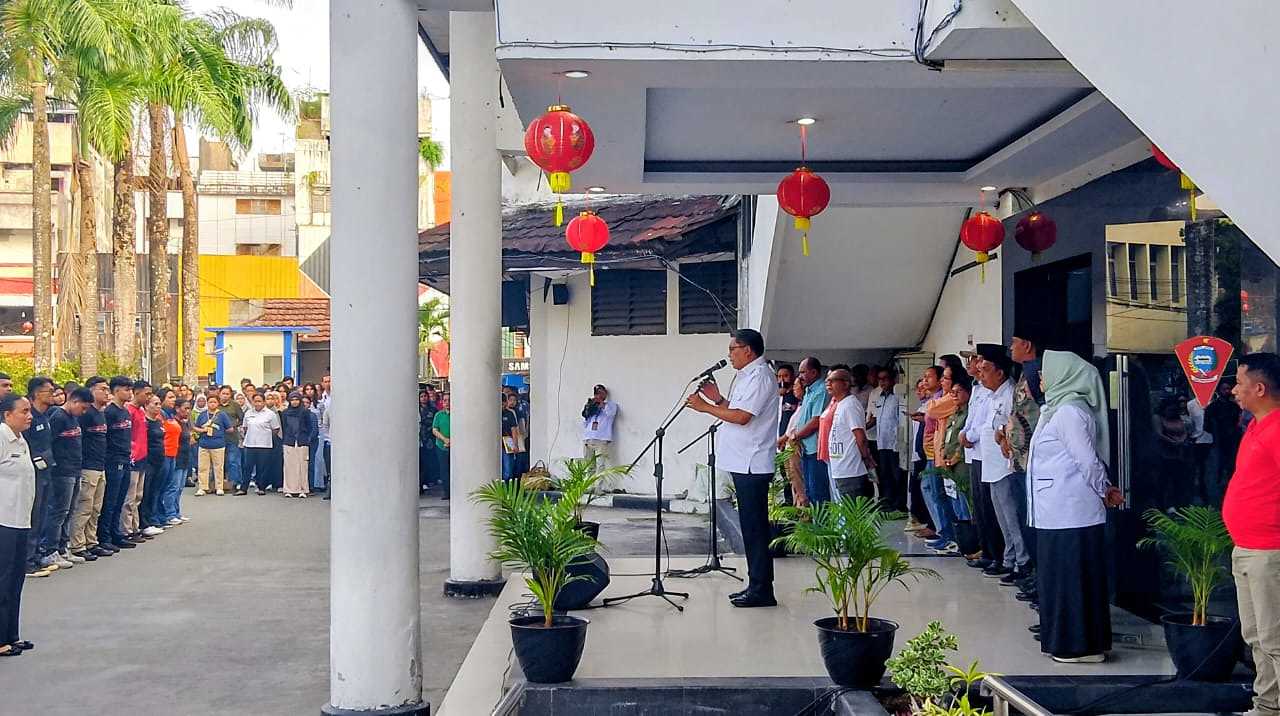 SUARAREFORMASI.COM.AMBON - Wali Kota Ambon, Bodewin Wattimena, menegaskan komitmen Pemerintah Kota Ambon dalam memperkuat budaya zakat, mendukung program strategis nasional, serta meluncurkan gerakan lingkungan “Tambahan” saat memimpin Apel Pagi yang dirangkaikan dengan penyerahan Piagam Penghargaan Baznas Kota Ambon Awards 2026.Kegiatan berlan...