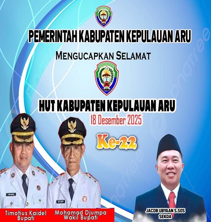 SUARAREFORMASI.COM.DOBO -,Upacara peringatan Hari Ulang Tahun (HUT) ke-22 Kabupaten Kepulauan Aru Tahun 2025 dilaksanakan di Lapangan Yos Sudarso Dobo, pada kamis (18/12/25).Bertindak sebagai Inspektur Upacara Bupati Kabupaten Kepulauan Aru Timotius Kaidel sementara yang menjadi polisi Komandan Upacara IPDA Januardiaz S. Sipayung dan Perwira Upacar...