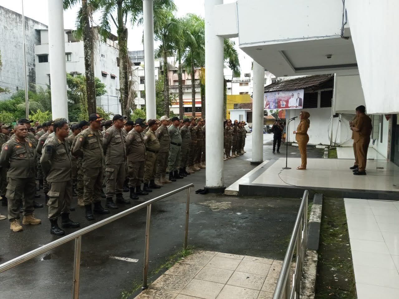SUARAREFORMASI. COM. AMBON - Dalam apel bersama dengan satuan polisi pamomg praja ( Satpol - PP) di Balai kota ,senin (21/9/2025) ,wakil wali kota Ambon Elly Toisutta mengharapkan agar para personil pol- PP dapat bekerja dengan rasa bertanggung jawab."Untuk itu dengan rasa tanggung jawab yang tinggi dengan beban yang ada,saya berharap bapak ibu Satpol PP bekerja dengan takut akan Tuhan,"...